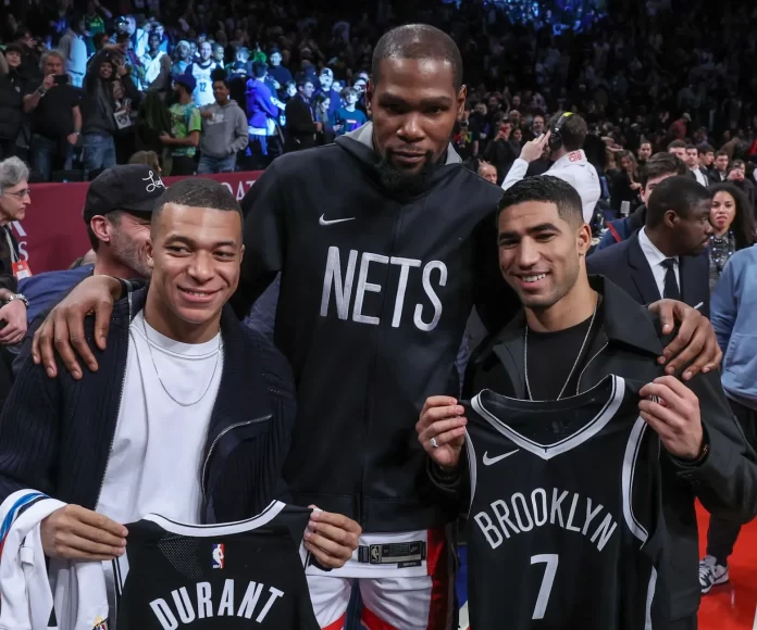 Mbappé et Hakimi ont reçu des maillots dédicacés de Kevin Durant, la superstar des Nets, MVP en 2014 (meilleur joueur de la Ligue ndlr), et l’une des légendes vivantes de ce sport.