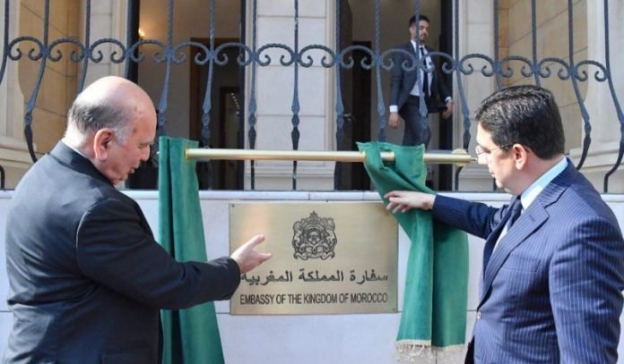 18 ans après, le ministre des Affaires étrangères du Maroc a rouvert samedi à Bagdad l’ambassade du royaume en Irak. Il s’agit d’un déplacement « historique » marquant le début d’une coopération accrue, estiment les chefs de la diplomatie des deux pays. L’ambassade du Maroc à Bagdad avait fermé ses portes en 2005 et la chancellerie avait été transférée en Jordanie en raison de « la dégradation des conditions sécuritaires » en Irak, selon le ministère des Affaires étrangères marocain.