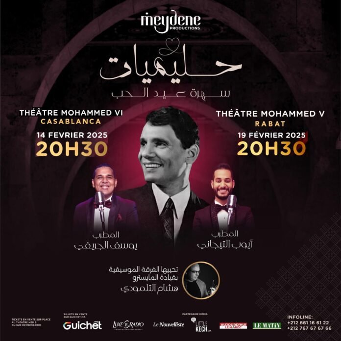 Ne manquez pas cette occasion unique de redécouvrir ces chefs-d’œuvre dans une version modernisée et émouvante. C’est également l’opportunité de célébrer l’émergence de Meydene Production comme un acteur culturel majeur au Maroc. Le label met en lumière des artistes talentueux tout en honorant des légendes de la musique arabe.